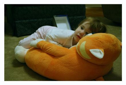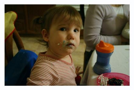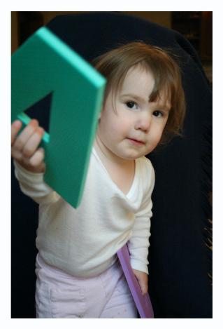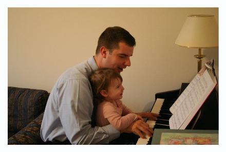 The bulk of these pictures were taken while trying to get Chester's three month shots. We weren't really going to take pictures of Audrey (especially considering the way she's dressed and her hair!), but she wanted us to take some pictures of her, too. She pulled some really cute faces, and I actually ended up liking these ones a lot, despite everything. On the bottom you get pictures of her playing the piano with Daddy, spinning around in her bedroom, telling me not to take her picture while eating Daddy's birthday cake, and watching Dora on her cat pillow.