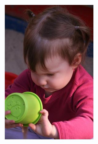 Audrey loves to play in the park. She likes mostly to scoop sand into a cup or a bucket and then dump it out. She also