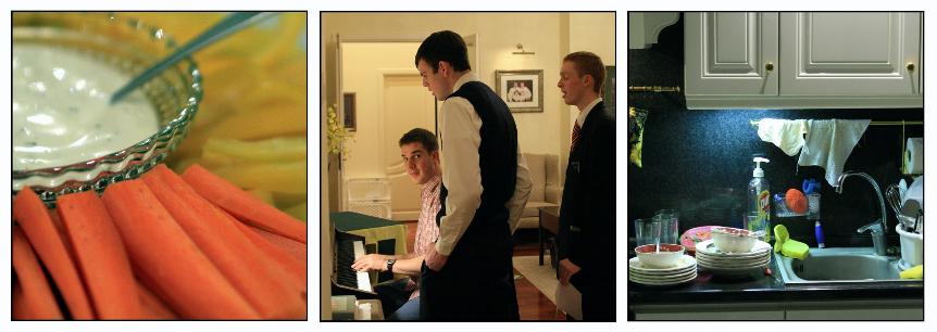 over for dinner and a rehearsal. After dinner, we leave the dishes so that we have enough time to watch