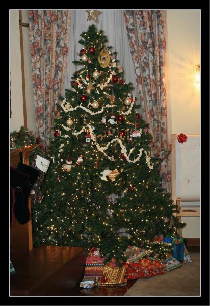 The tree picture is to show how funny looking our tree is now. The ornaments keep drifting upward as our kids keep getting into