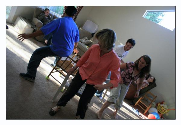and Liz won, and a game where the loser had to fish a dime out of a pile of flour with their mouth. Fun times were had by all, I