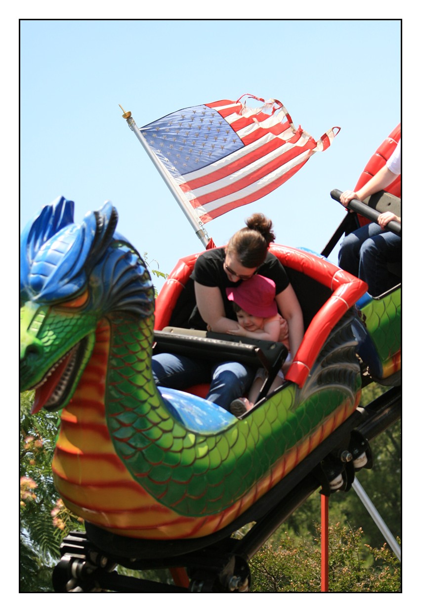 Here's a close-up of her trauma. She even mentioned a couple of times later, "I don't like the dragon ride." Poor girl is scarred for