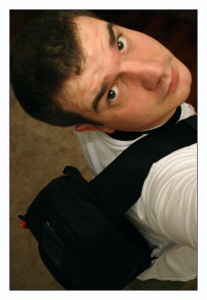 baby Samuel, I had to content myself with trying to take a picture of me wearing my new camera bag. It's harder than it looks. I