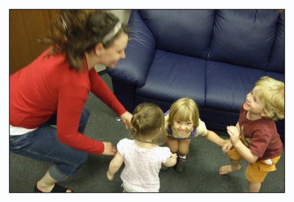 Laura playing "Ring Around the Rosie" with the little kids. It was cute.