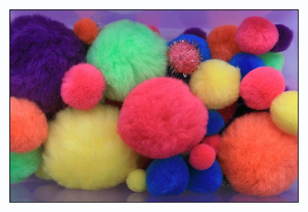 Audrey's box o' pompoms. She gets to play with them after Chester goes to bed. She loves them.