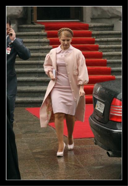 of Staff Bolton, Prime Minister of Ukraine Yuliya Tymoshenko running to her motorcade vehicle, the President's limo, and President