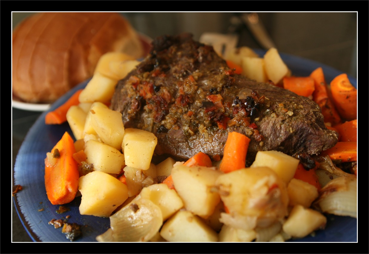 After we had our yummy yummy pot roast for dinner (see below), we got out the finger paints. Laura let me finger paint with the