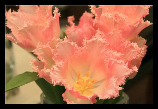 Audrey and I went grocery shopping together today. On the way home, we picked up some funky fuzzy tulips for Laura from the