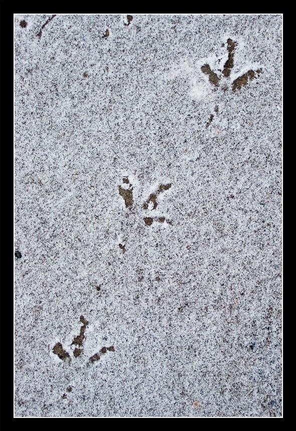 We received a light dusting of snow today, and a bird walked through it. (So did I for that matter, but my footprints don't really make