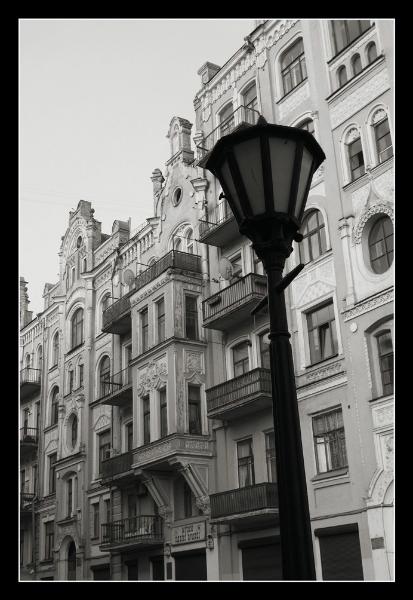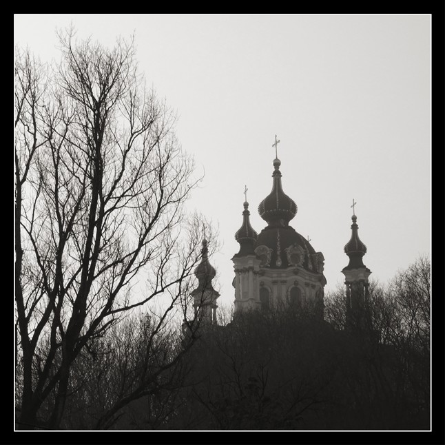 An early morning shot of St. Andrew's Cathedral through the mist. And another one of the bottom of St. Andrew's Spusk. On my