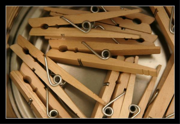 Clothespins in a number 10 can.