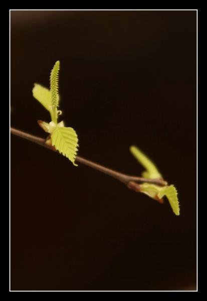 A bit of green for St. Patrick's Day. Our birch branches from yesterday sprouted little leaves. I think it's awesome!