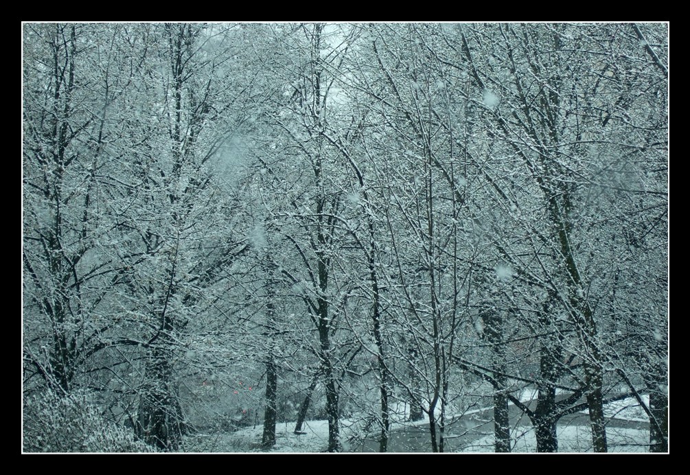 this like I actually wrote it on the day) we've gotten this weird freak snow. It's been warm, so it's melted after just a little while, but it's