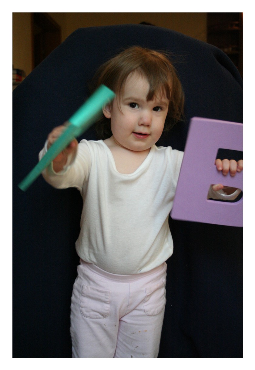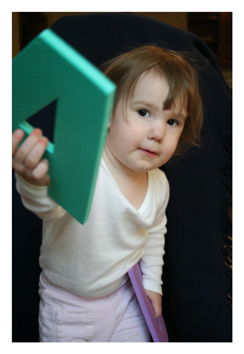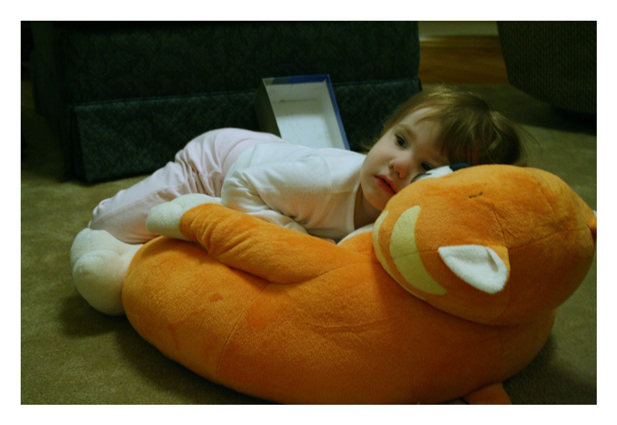 The bulk of these pictures were taken while trying to get Chester's three month shots. We weren't really going to take pictures of Audrey (especially considering the way she's dressed and her hair!), but she wanted us to take some pictures of her, too. She pulled some really cute faces, and I actually ended up liking these ones a lot, despite everything. On the bottom you get pictures of her playing the piano with Daddy, spinning around in her bedroom, telling me not to take her picture while eating Daddy's birthday cake, and watching Dora on her cat pillow.