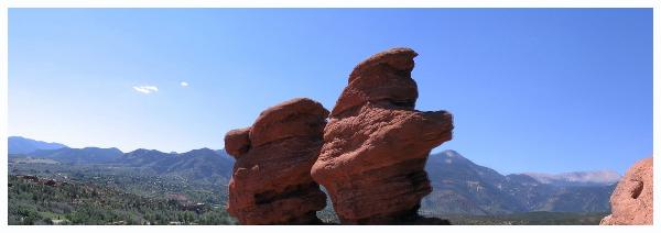 | "Siamese Twins" These are the Siamese Twins. The big bald mountain in the background on the right of the pictures is Pike's Peak. |