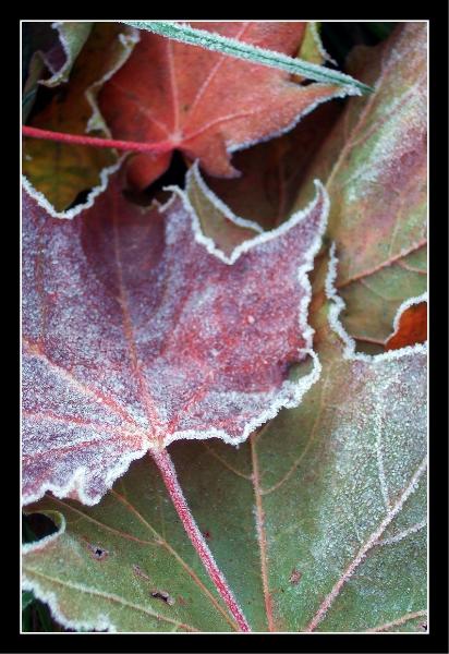 throughout the day. The morning was very beautiful, however. I tried to get some pictures of the frosty leaves, but I was in a bit of a