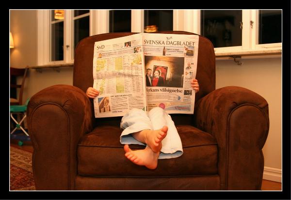 Audrey reading the paper, the last in my series of 2059 pictures.